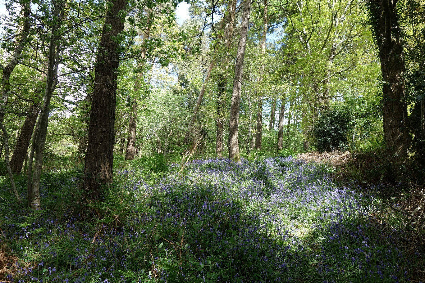 The bluebells of May have given way largely to the bracken of June. No badger has appeared in our bit of the wood for some time. We found one dead on the nearest main road not so far away, possibly one we've seen on camera just over the fence -- a very big male as it turned out, if it's the same one.