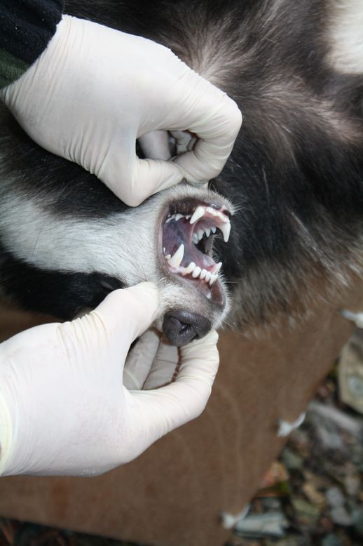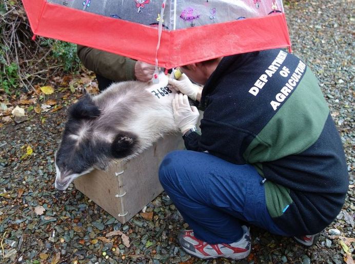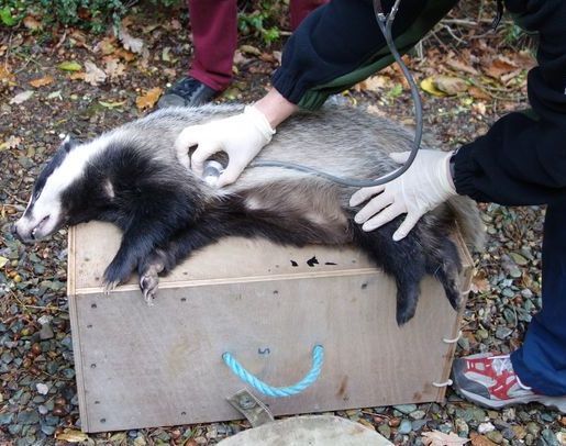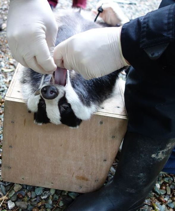 The badgers, who were also vaccinated against bovine TB (not shown), were processed one at a time, first Benji, then the feistier Róisín: