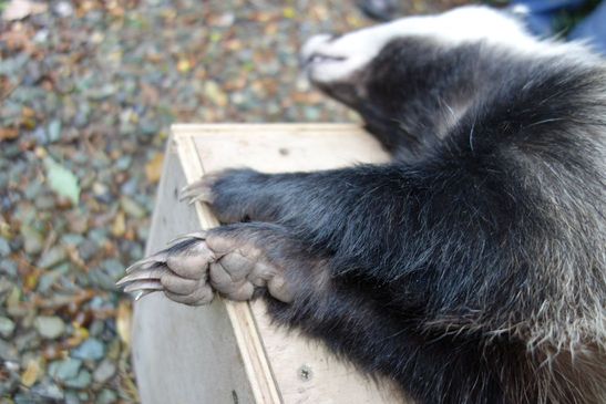 Close-up of a still anaesthetised badger.</font size>