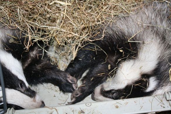 The badgers exploring their new home.